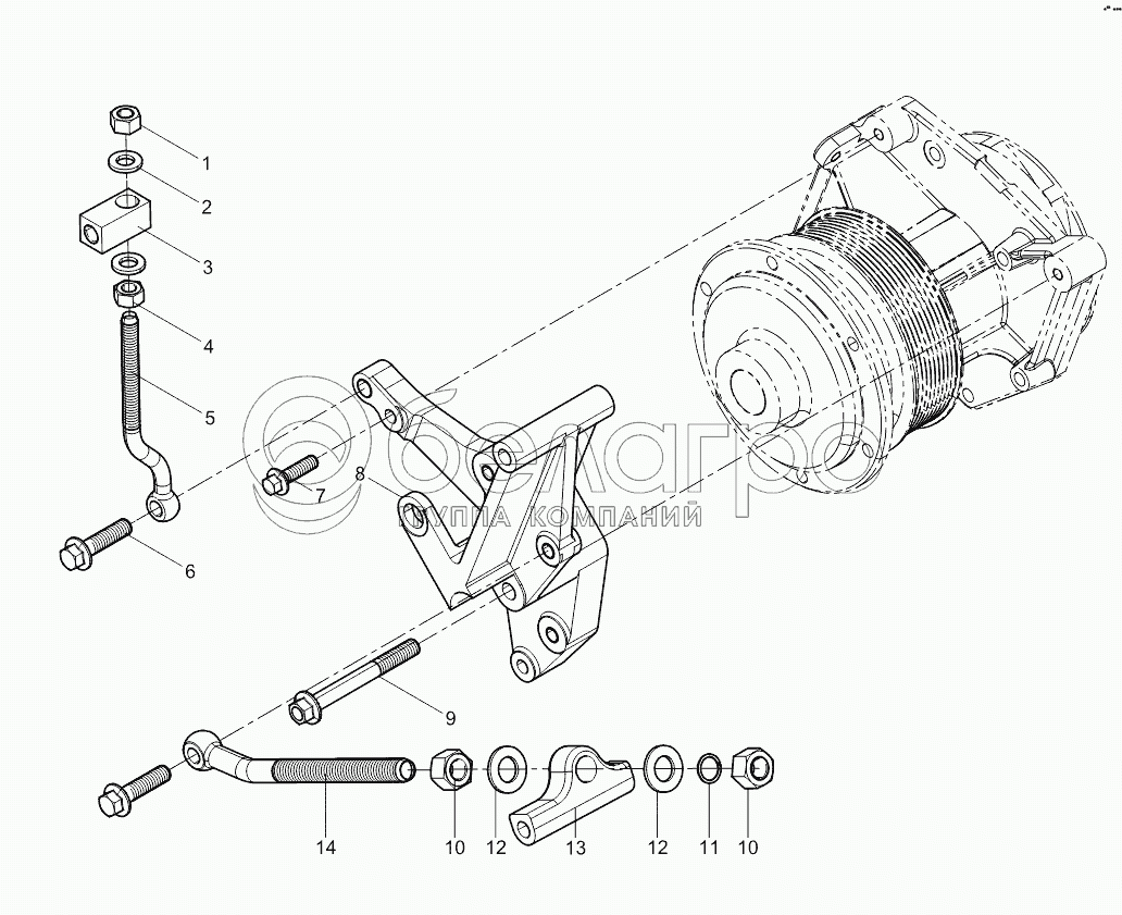 Каталог запасных частей к технике: Weichai WP10336E40 (Евро 4). Generator Bracket Group