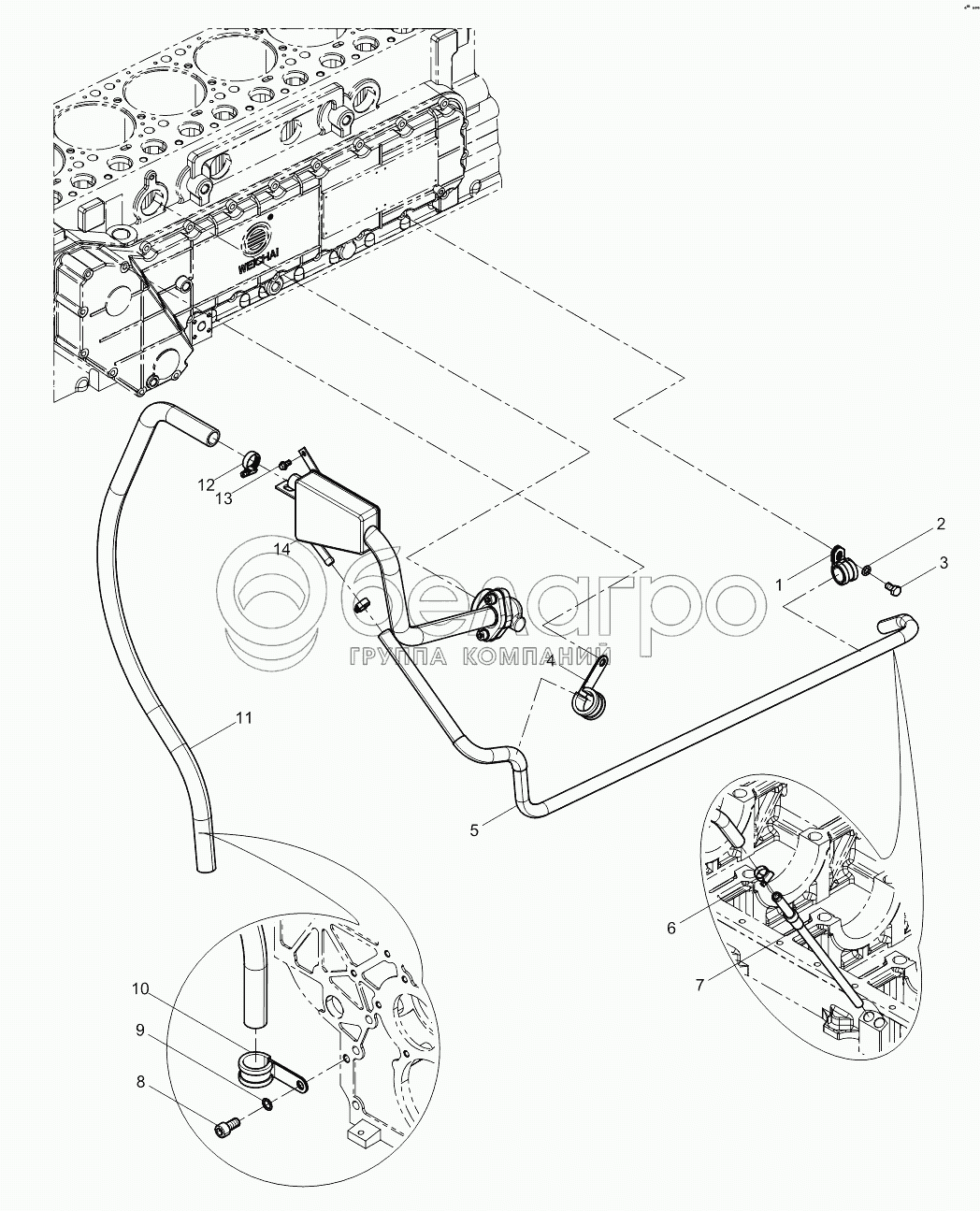 Каталог запасных частей к технике: Weichai WP10336E40 (Евро 4). Oil-gas Separator Group
