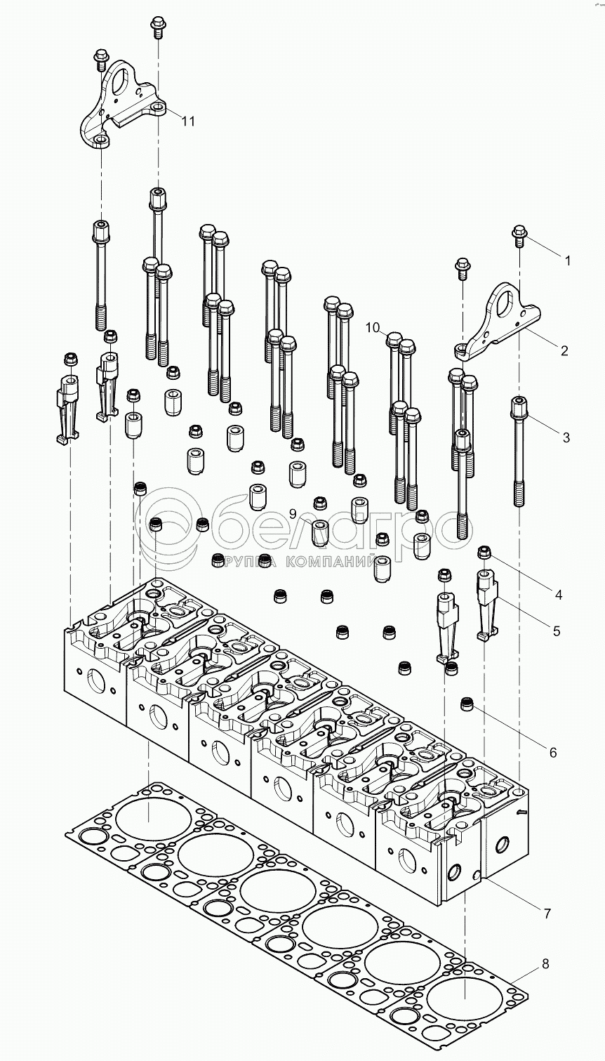 Каталог запасных частей к технике: Weichai WP10336N (Евро 3). Cylinder head assembly