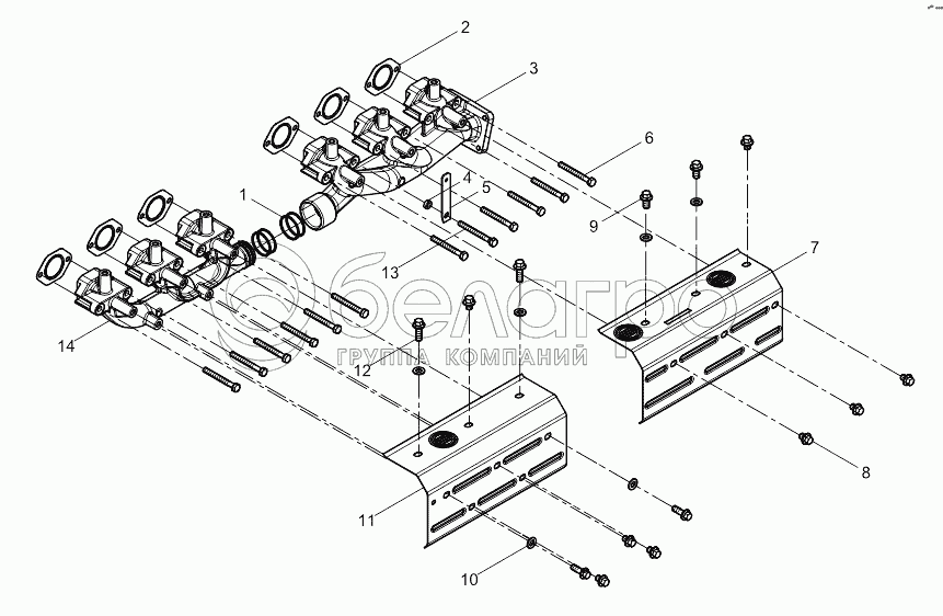 Каталог запасных частей к технике: Weichai WP10336N (Евро 3). Exhaust Manifold Group
