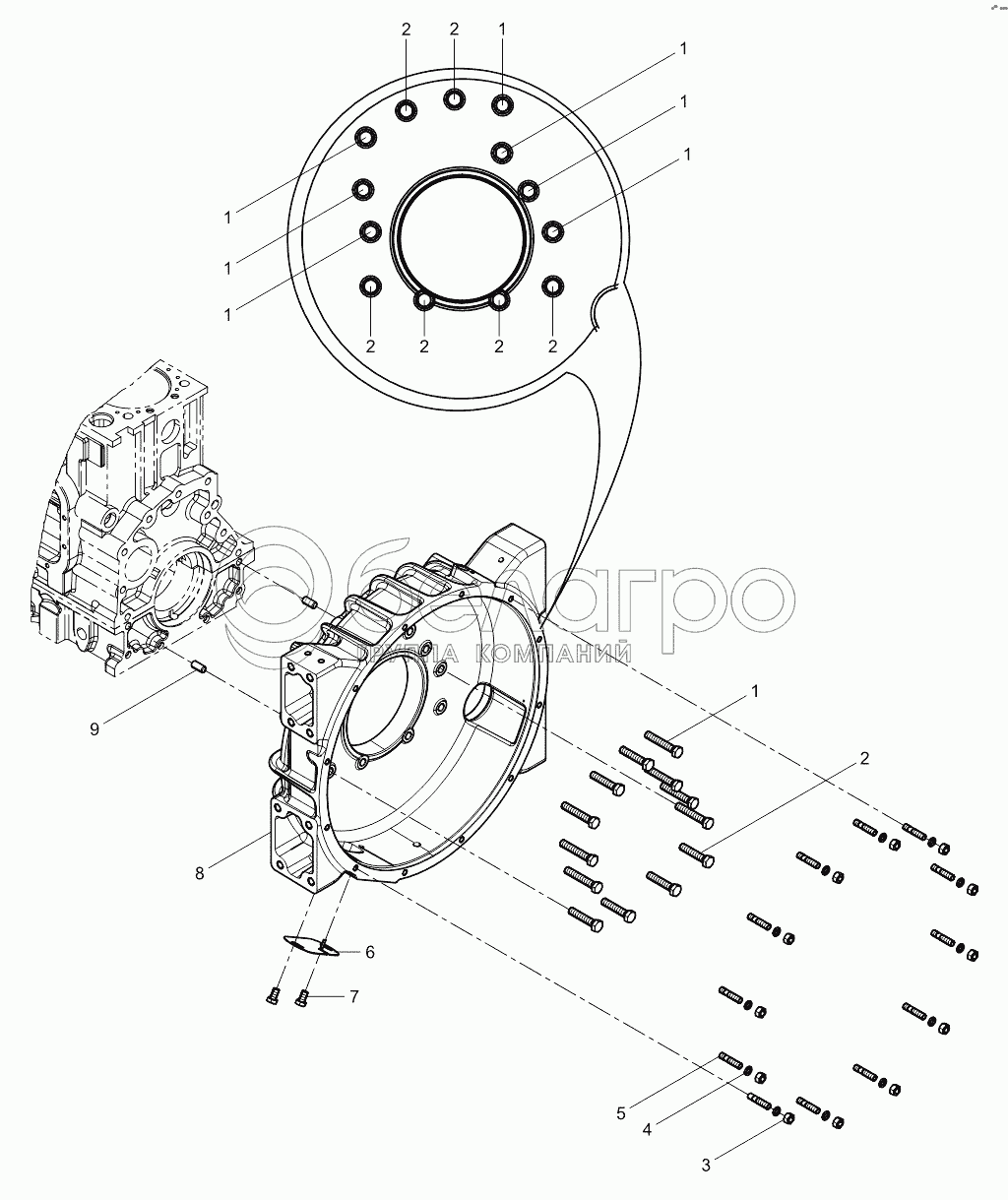 Каталог запасных частей к технике: Weichai WP10336N (Евро 3). Flywheel Housing Group