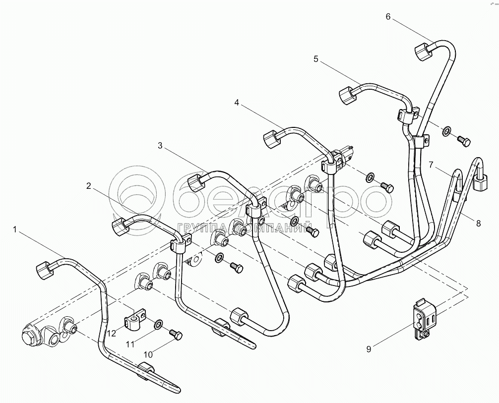 Каталог запасных частей к технике: Weichai WP10336N (Евро 3). High pressure pipe assembly
