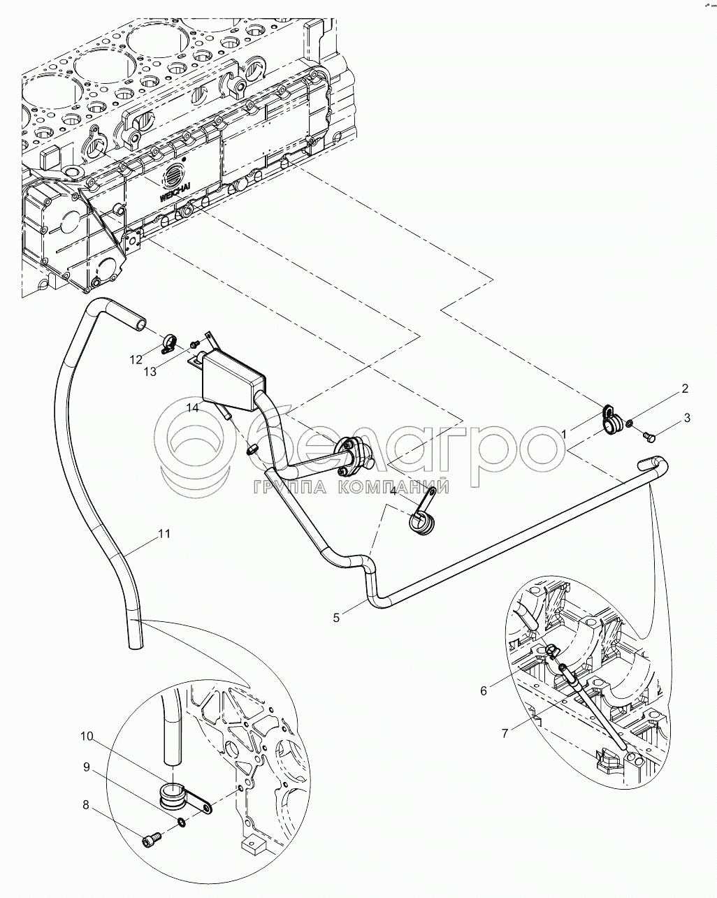 Каталог запасных частей к технике: Weichai WP10336N (Евро 3). Oil-gas Separator Group