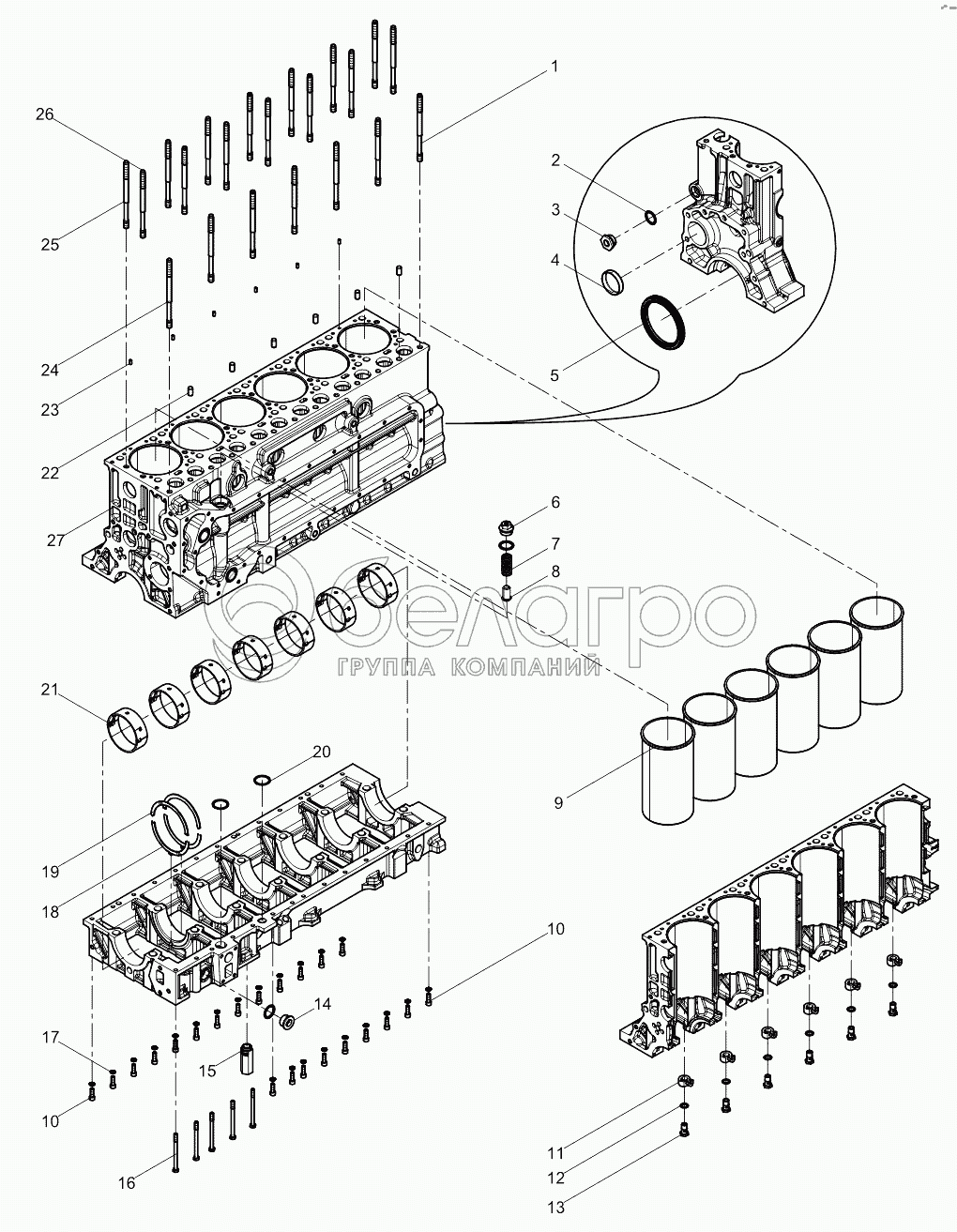 Каталог запасных частей к технике: Weichai WP10340E32 (Евро 2). Engine Block Group