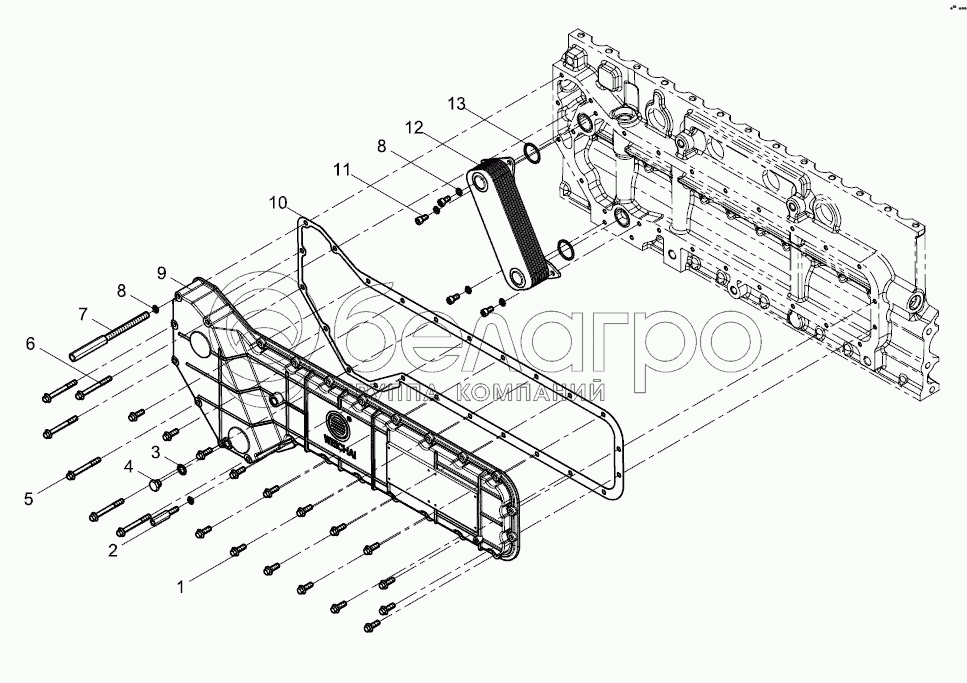 Каталог запасных частей к технике: Weichai WP10340E32 (Евро 2). Oil cooler assembly