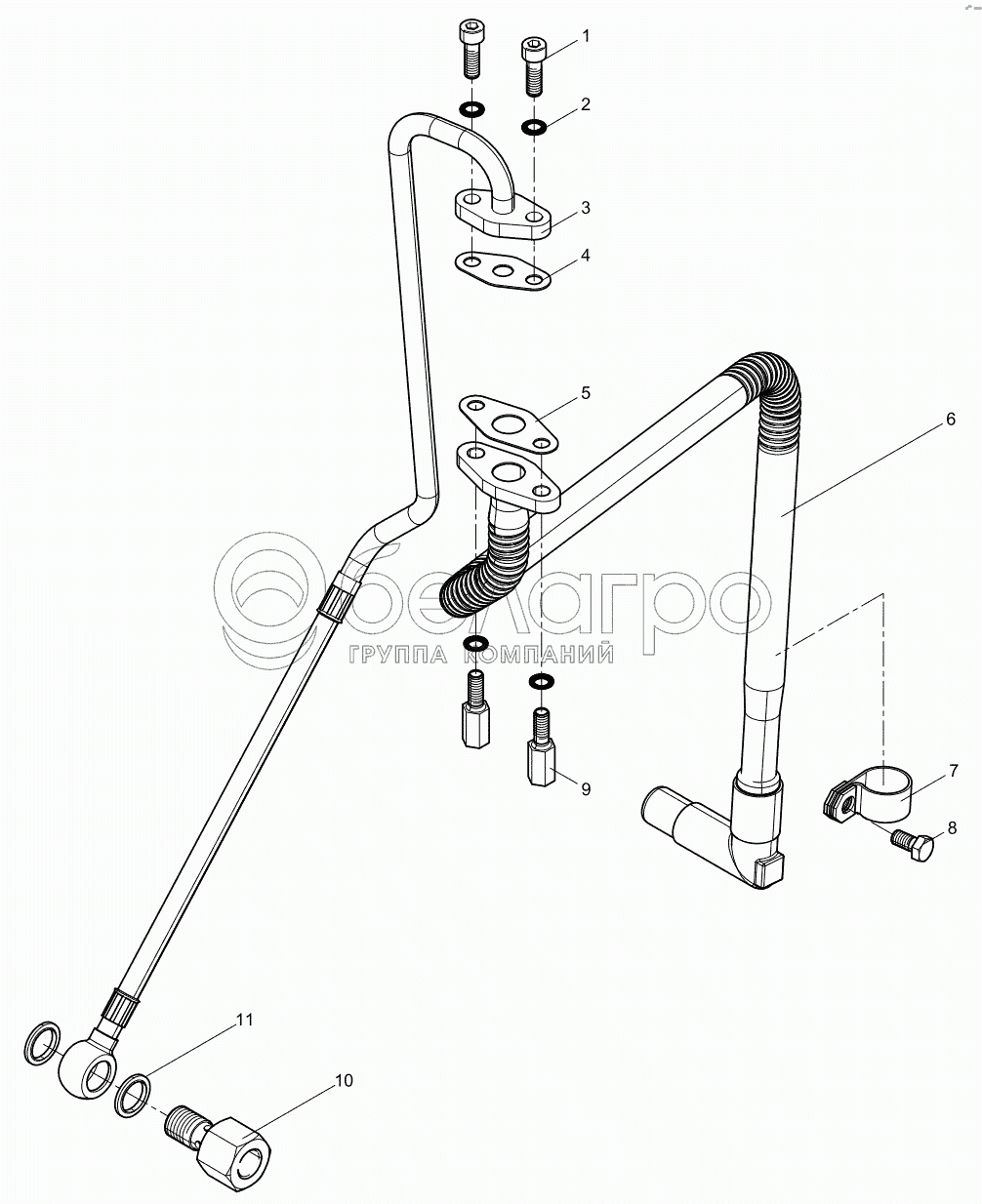 Каталог запасных частей к технике: Weichai WP10.336E40. Turbocharger Oil pipe Group