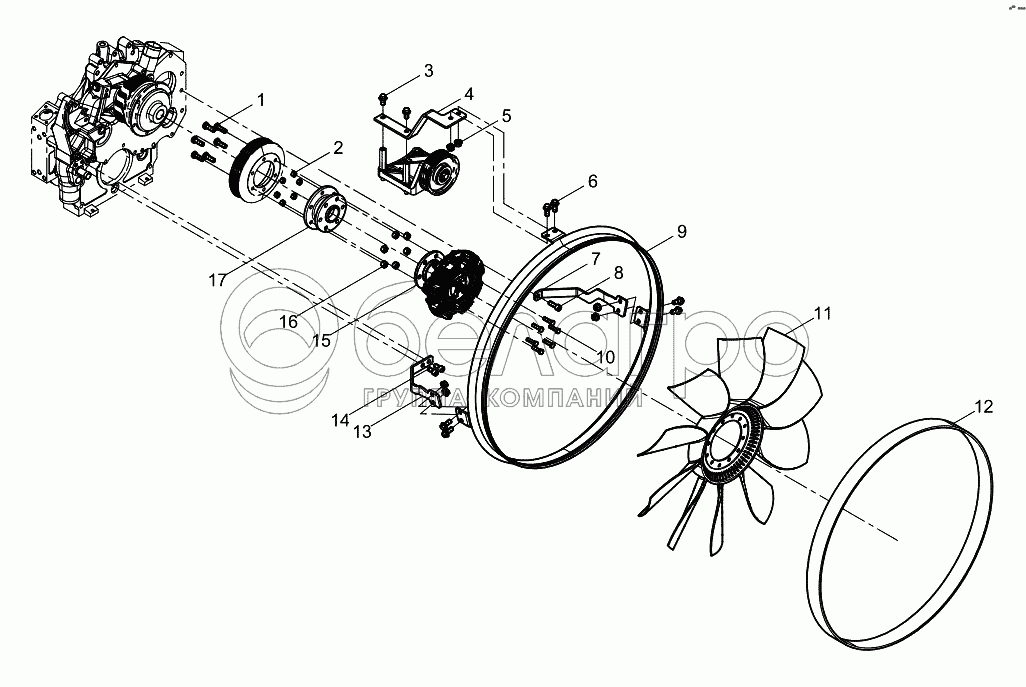 Каталог запасных частей к технике: Weichai WP10 DHL10Q0032. Fan and Hub Group
