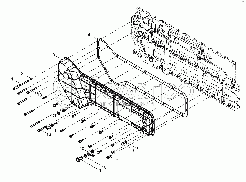 Каталог запасных частей к технике: Weichai WP10 DHL10Q0032. Oil cooler cover group
