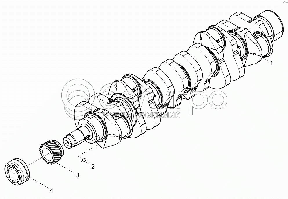 Каталог запасных частей к технике: Weichai WP10 DHL10Q0213. Crankshaft Subassembly