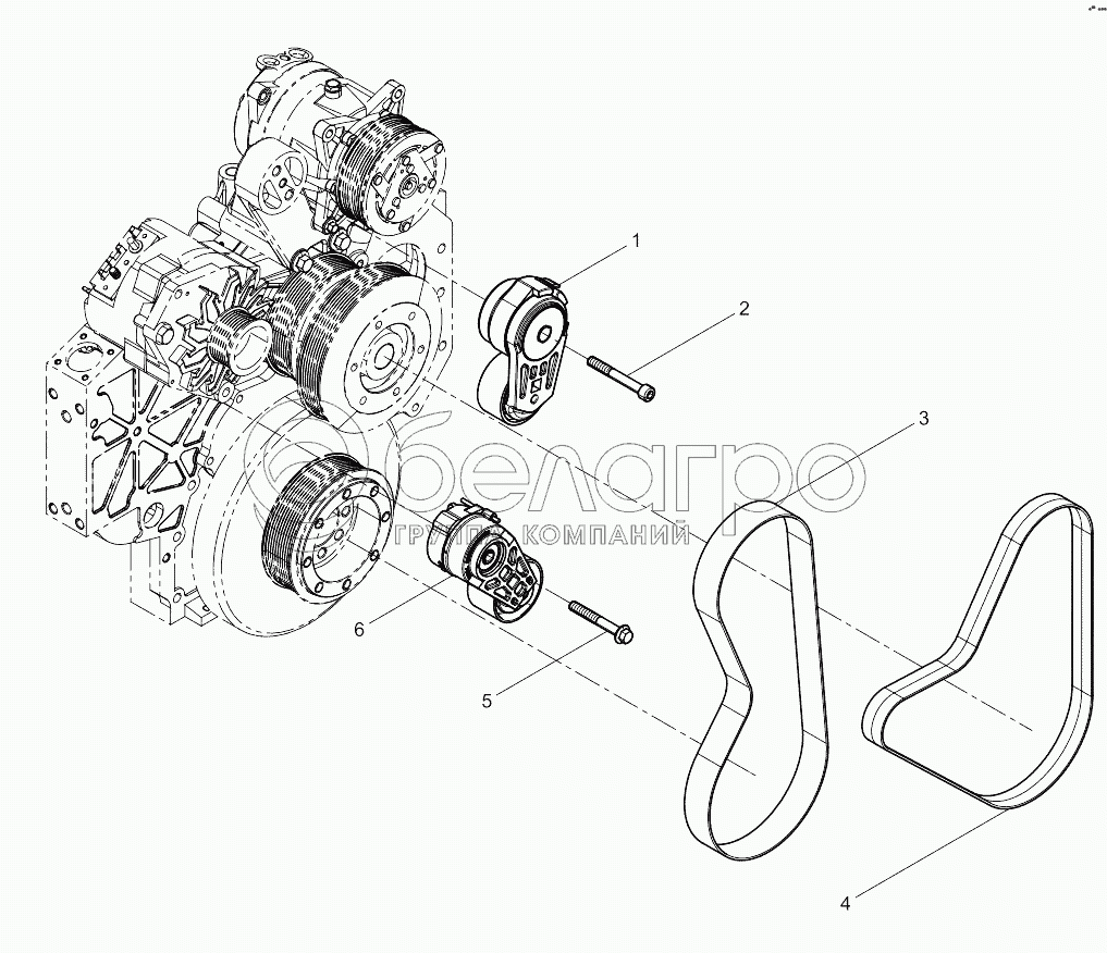 Каталог запасных частей к технике: Weichai WP10 DHL10Q0213. Tensioner And Belt Group