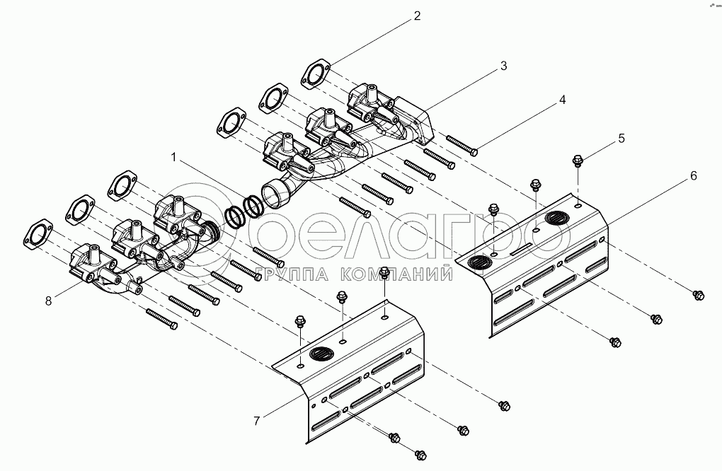 Каталог запасных частей к технике: Weichai WP10 DHP10Q0168. Exhaust Manifold Group