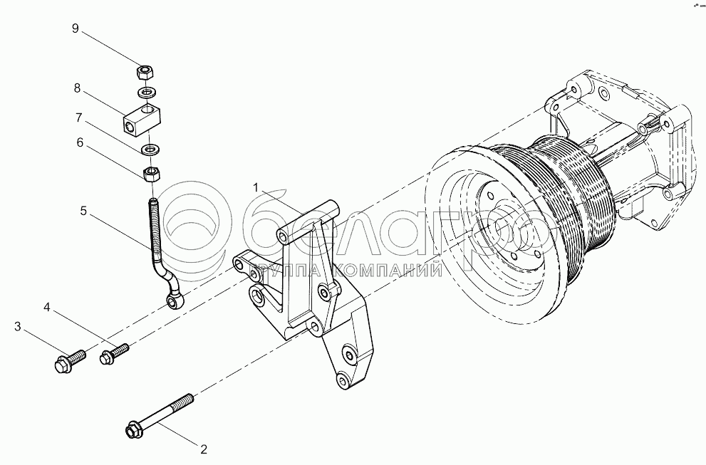 Каталог запасных частей к технике: Weichai WP10 DHP10Q0168. Generator Bracket Group