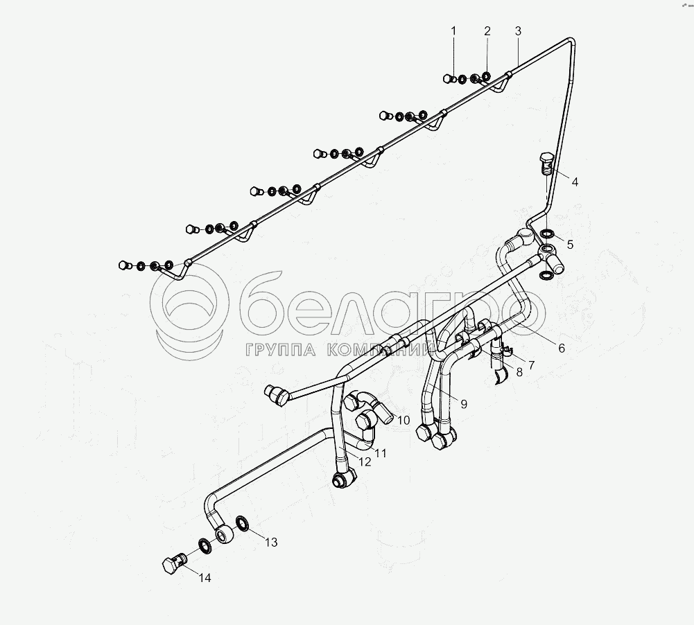Каталог запасных частей к технике: Weichai WP10 DHP10Q0168. Low Pressure Oil pipe Group