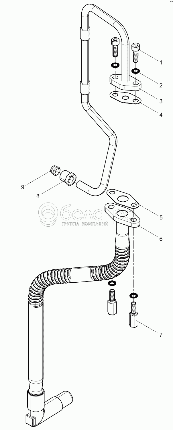Каталог запасных частей к технике: Weichai WP10 DHP10Q0168. Turbocharger Oil pipe Group