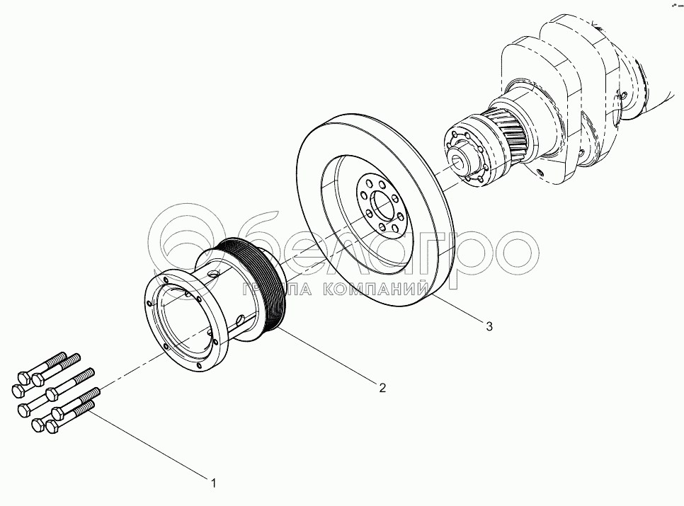 Каталог запасных частей к технике: Weichai WP10 DHP10Q1242. Crankshaft Pulley Group