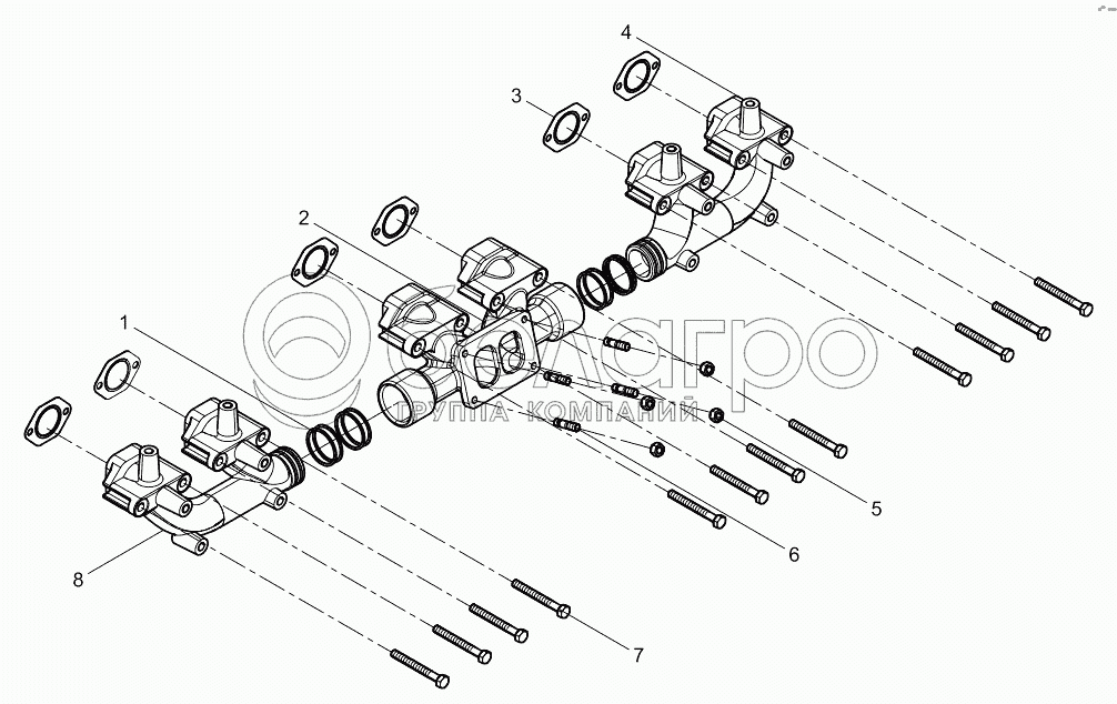 Каталог запасных частей к технике: Weichai WP10 DHP10Q1242. Exhaust Manifold Group