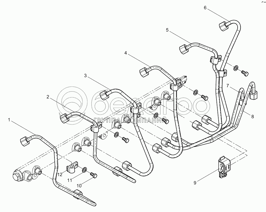 Каталог запасных частей к технике: Weichai WP10 DHP10Q1242. High pressure pipe assembly