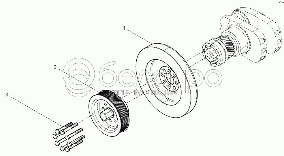 Каталог запасных частей к технике: Weichai WP10NG DHP10Q1667. Crankshaft Pulley Group