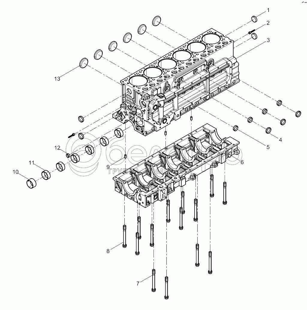 Каталог запасных частей к технике: Weichai WP10NG DHP10Q1667. Cylinder Block Preassembly