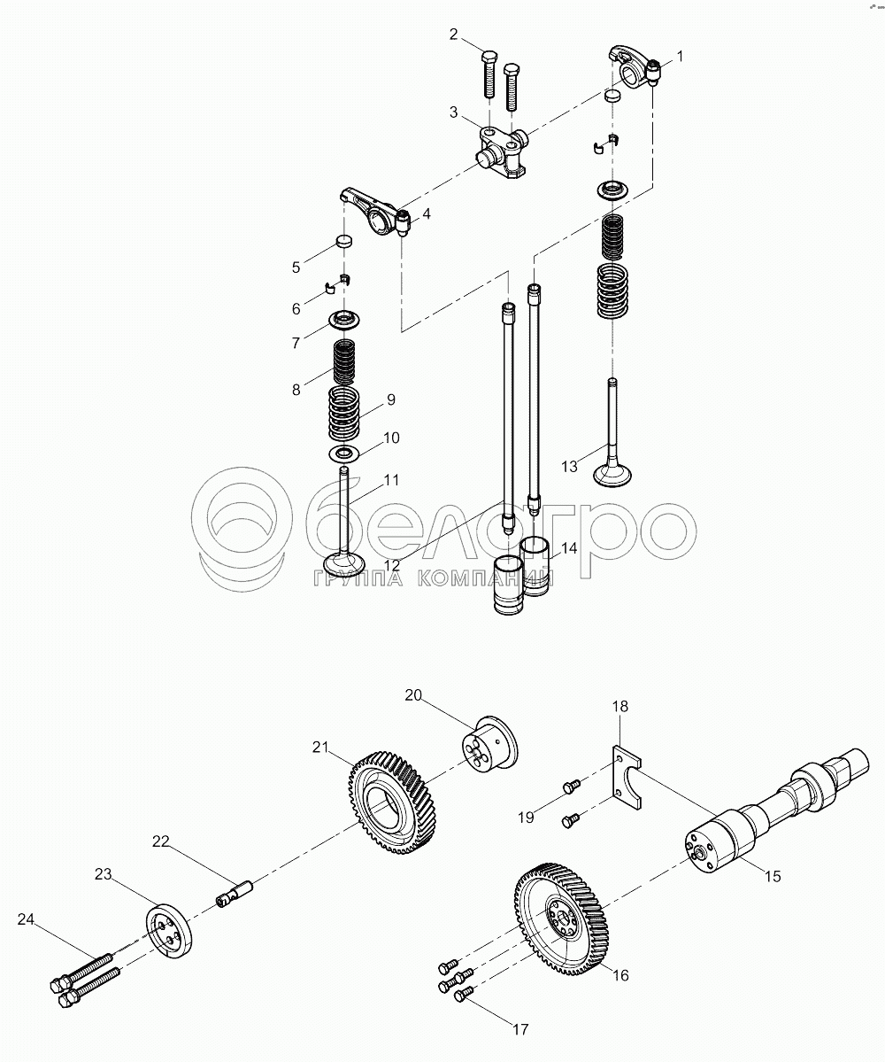 Каталог запасных частей к технике: Weichai WP10NG DHP10Q1667. Valve Mechanism assembly