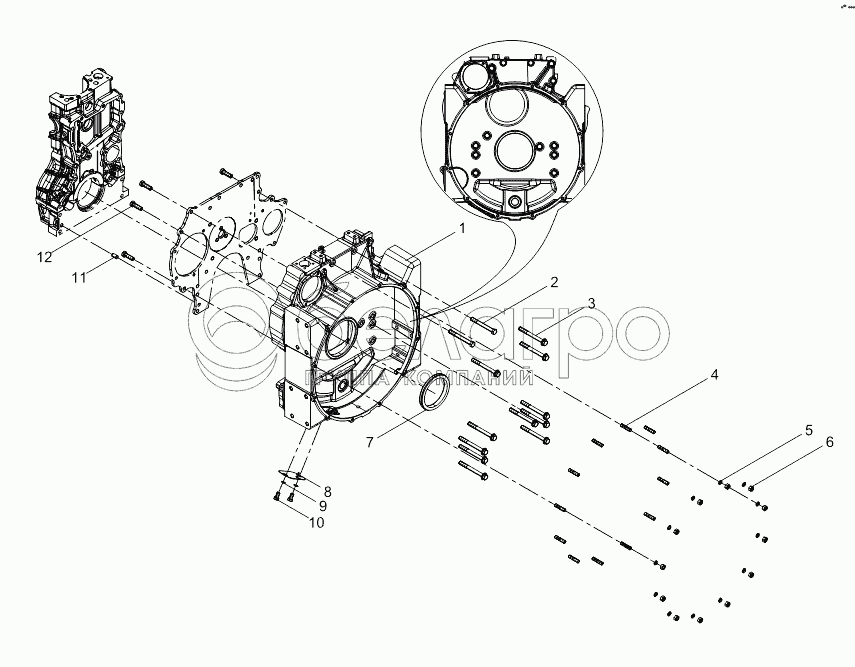 Каталог запасных частей к технике: Weichai WP12 375E40 (Евро 4). Flywheel Housing Group