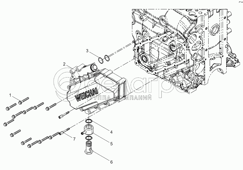 Каталог запасных частей к технике: Weichai WP12 375E40 (Евро 4). Oil Cooler Cap Bonding Set