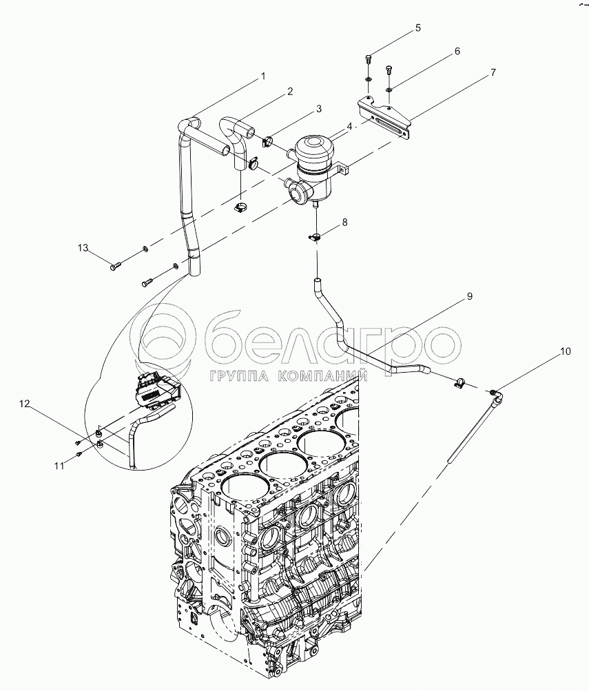 Каталог запасных частей к технике: Weichai WP12 375E40 (Евро 4). Oil-gas Separator Group