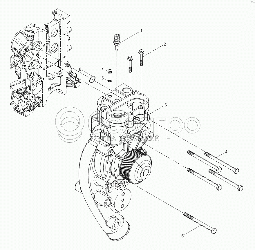 Каталог запасных частей к технике: Weichai WP12 375E40 (Евро 4). Water pump assembly