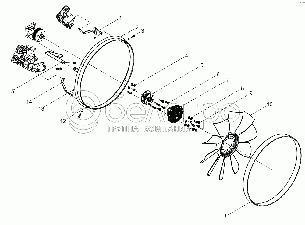 Каталог запасных частей к технике: Weichai WP12.375E50. Fan and Hub Group