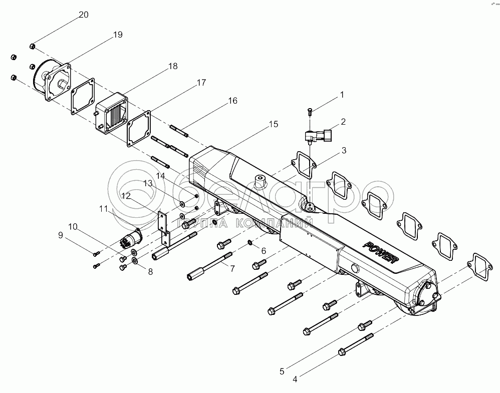 Каталог запасных частей к технике: Weichai WP12.400E50. Intake manifold group