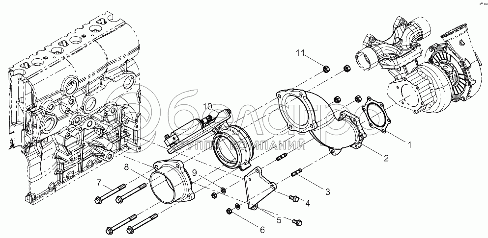 Каталог запасных частей к технике: Weichai WP12.400E50. Rear Exhaust Manifold Group