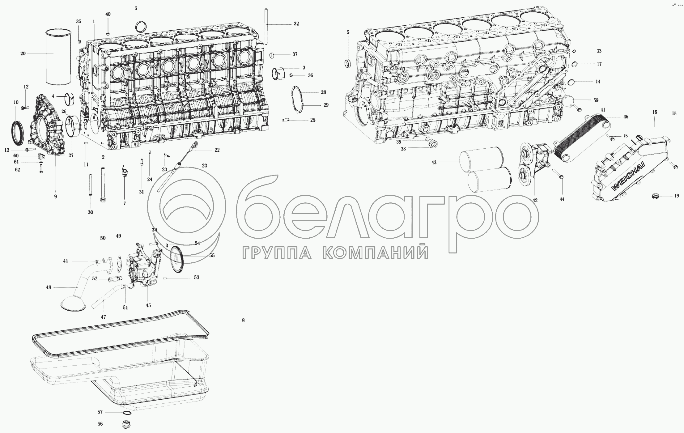 Каталог запасных частей к технике: Weichai WP12 (Евро 3). Корпус цилиндра