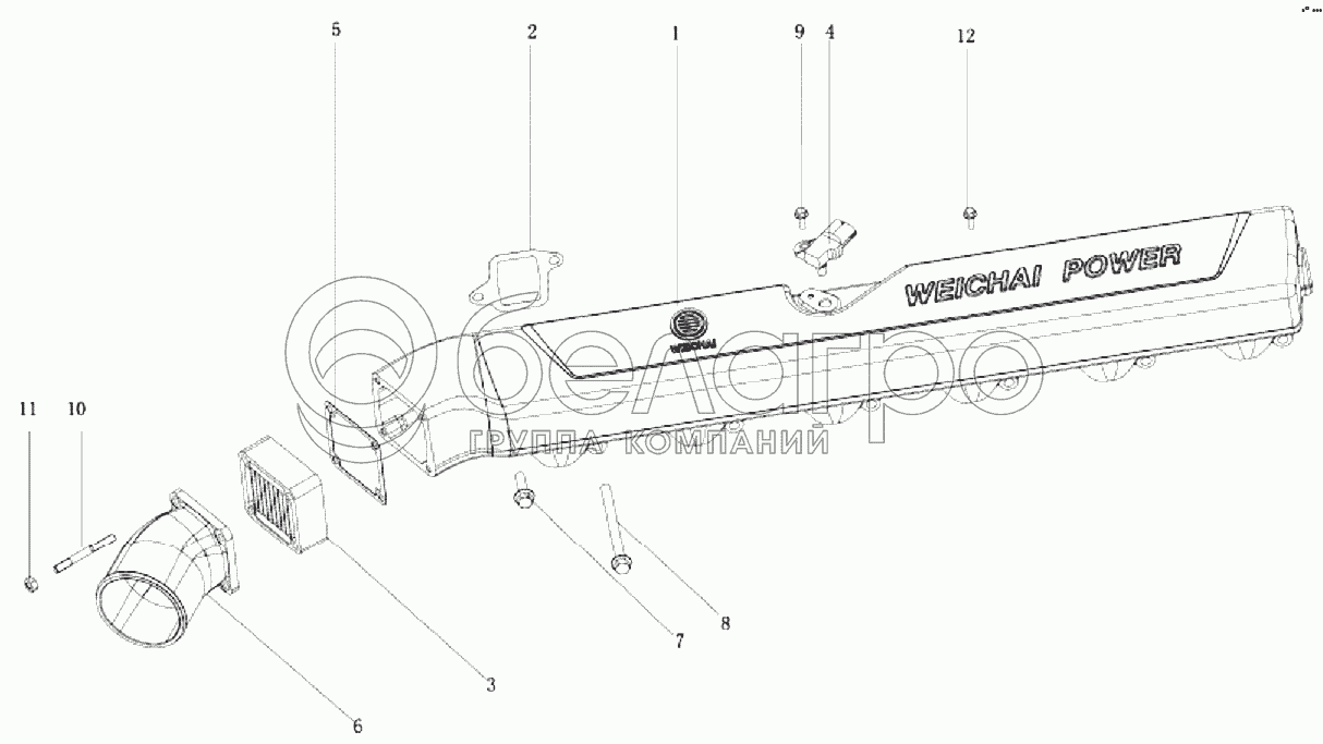 Каталог запасных частей к технике: Weichai WP12 (Евро 3). Впускная система