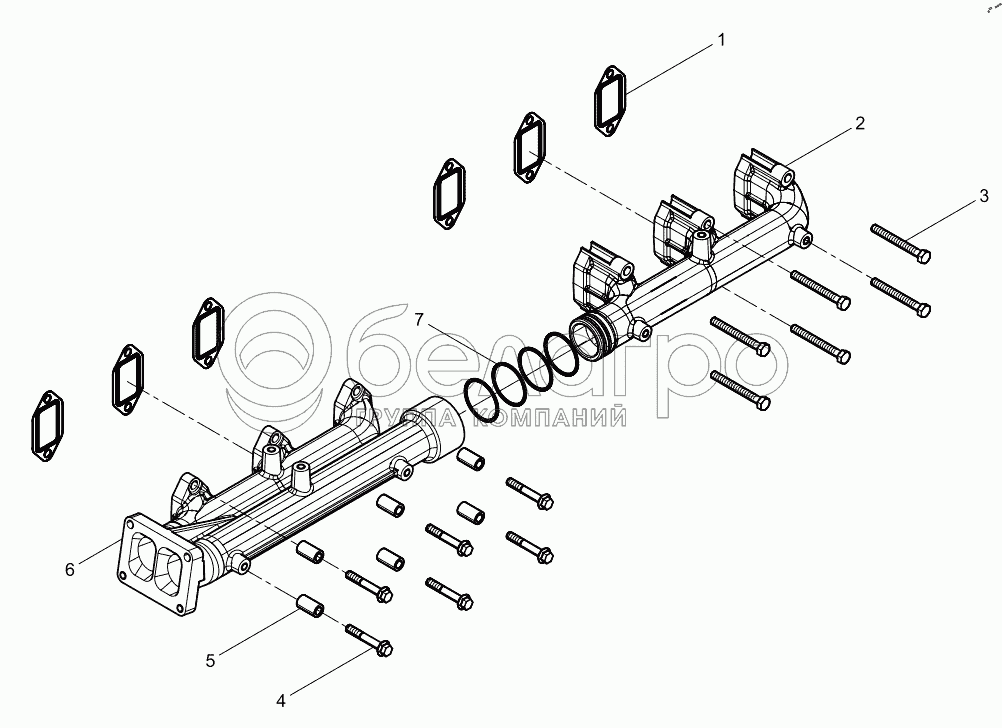 Каталог запасных частей к технике: Weichai WP12 DHP12N0219. Exhaust Manifold Group