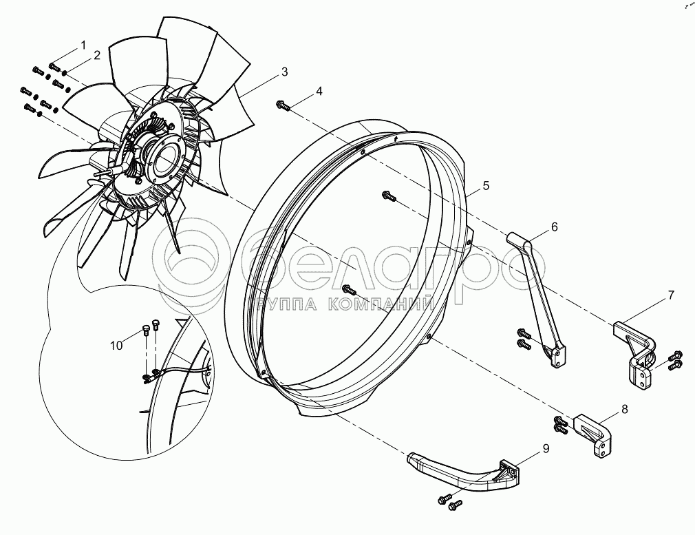 Каталог запасных частей к технике: Weichai WP12 DHP12N0219. Fan and Hub Group