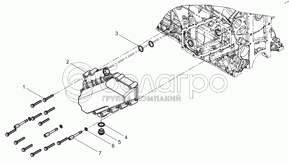 Каталог запасных частей к технике: Weichai WP12 DHP12N0219. Oil cooler cap Group
