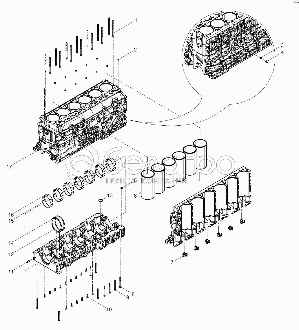 Каталог запасных частей к технике: Weichai WP12 DHP12Q0501. Engine Block Group
