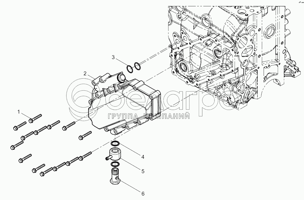 Каталог запасных частей к технике: Weichai WP12 DHP12Q0501. Oil cooler cover assembly