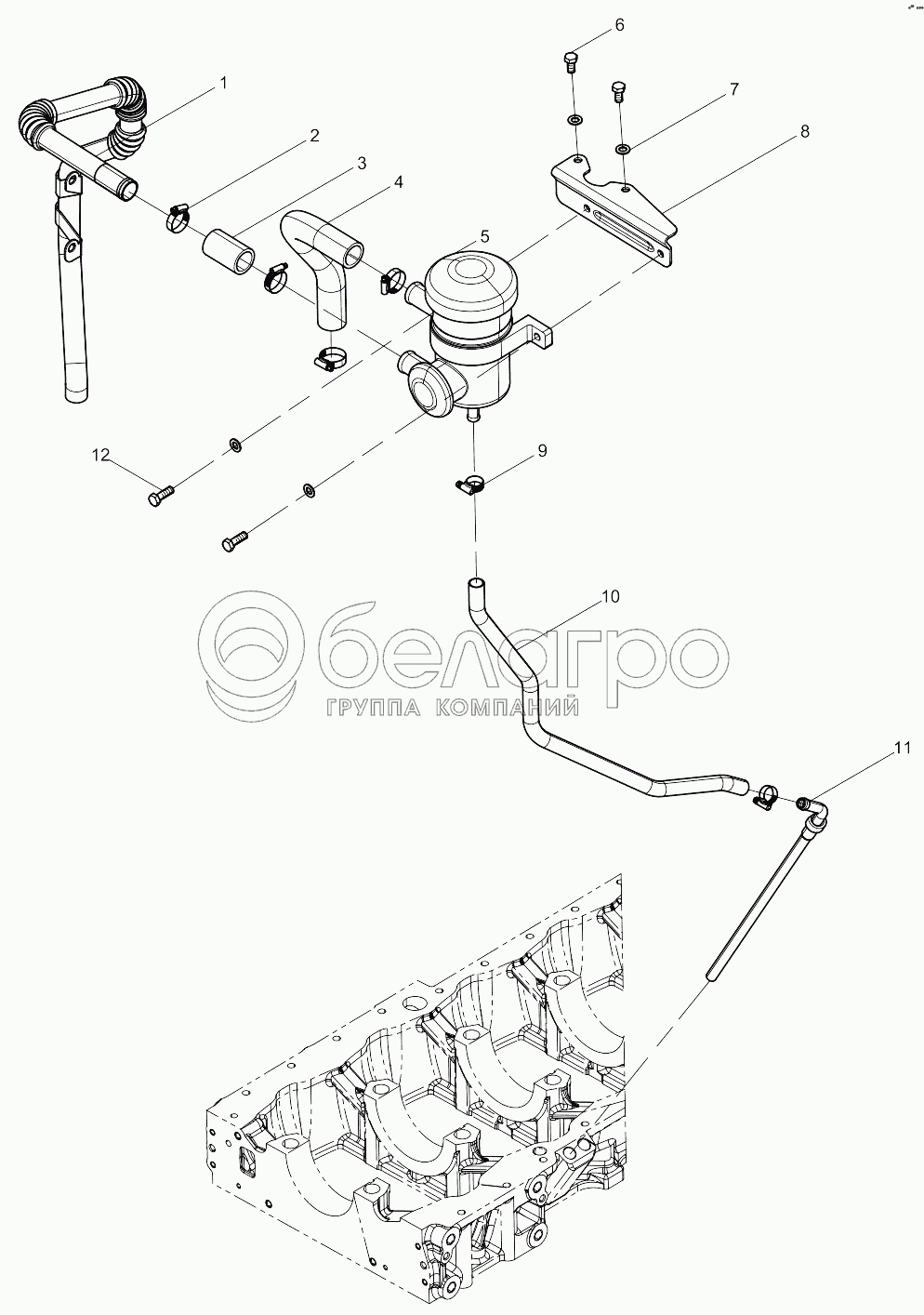 Каталог запасных частей к технике: Weichai WP12 DHP12Q0501. Oil-gas Separator Group