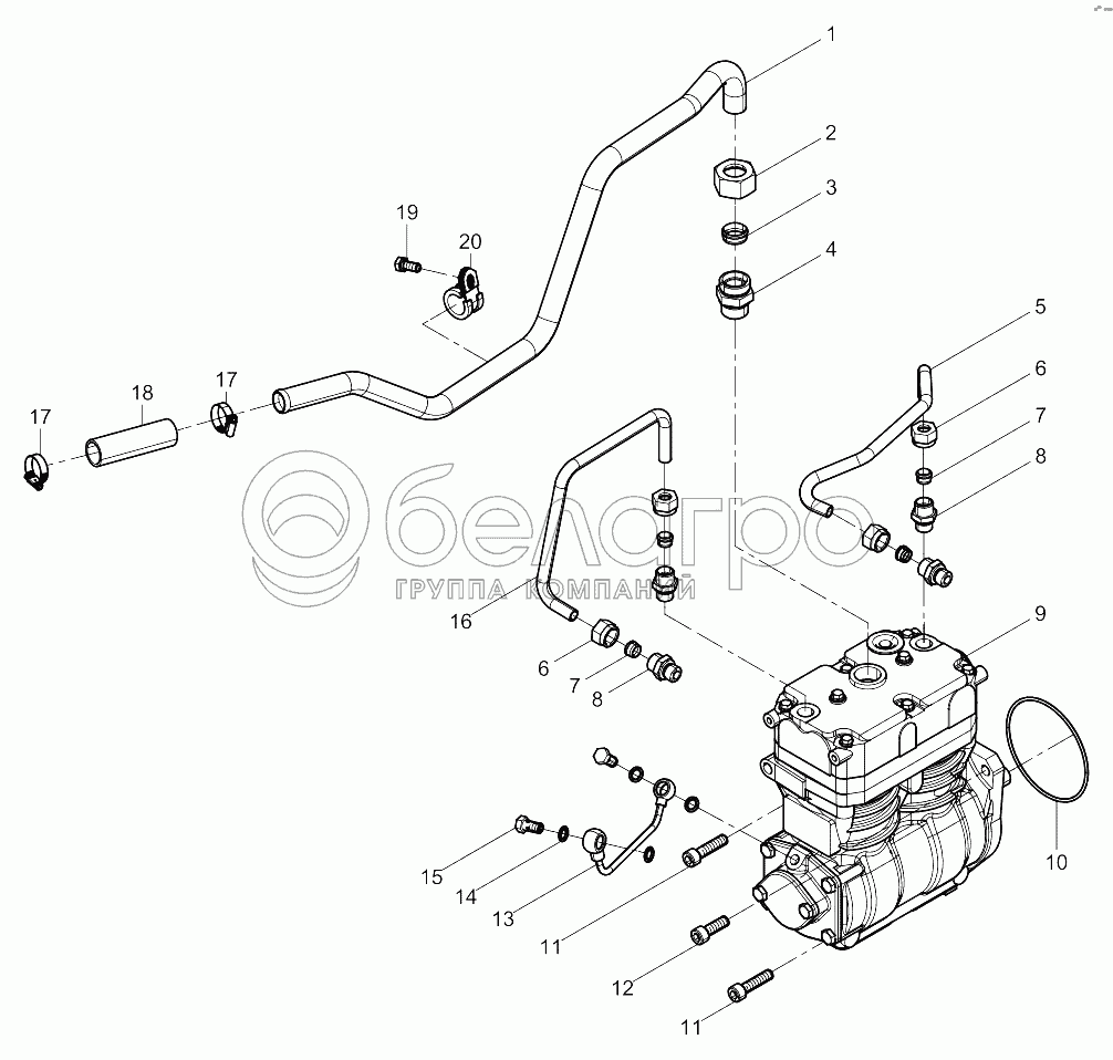 Каталог запасных частей к технике: Weichai WP12NG380E51. Air Compressor Group