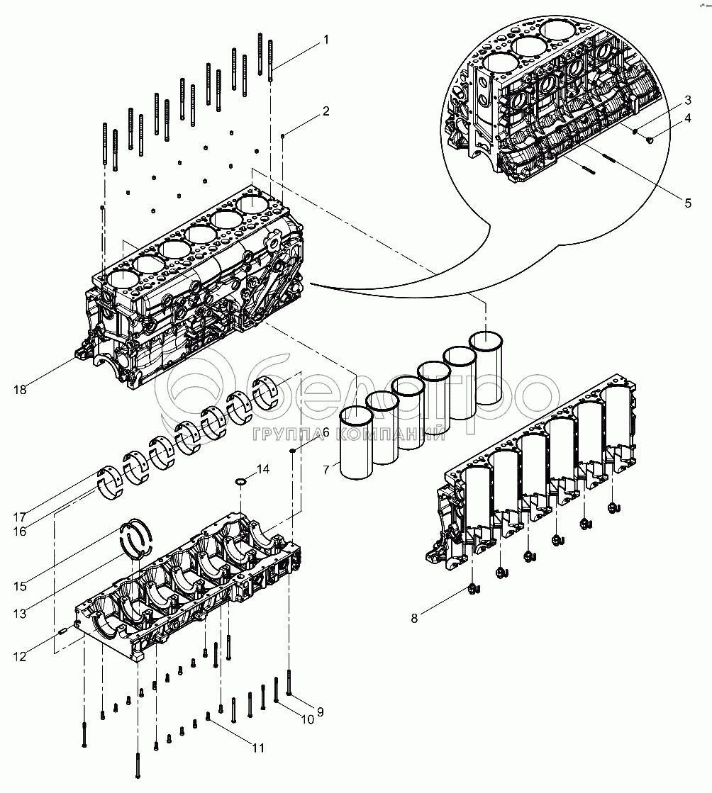 Каталог запасных частей к технике: Weichai WP12NG380E51. Engine Block Group