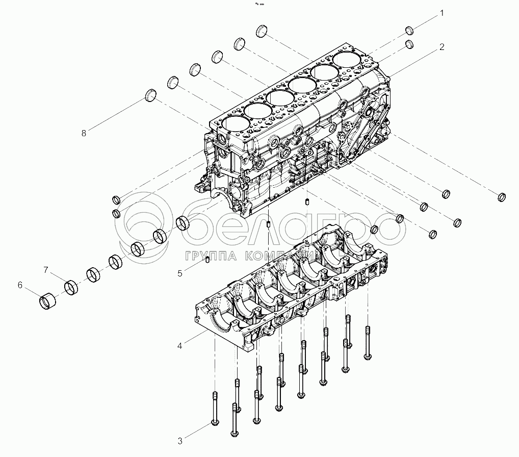 Каталог запасных частей к технике: Weichai WP13 DHP13Q0928. Crankcase pre-assembly