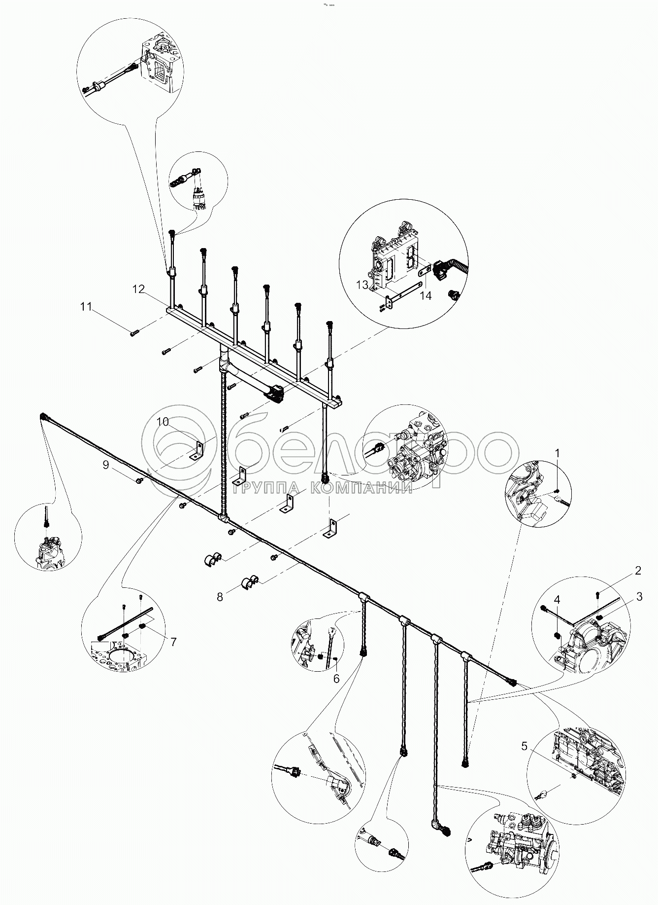 Каталог запасных частей к технике: Weichai WP13 DHP13Q0928. Electronic Control System Harness Group