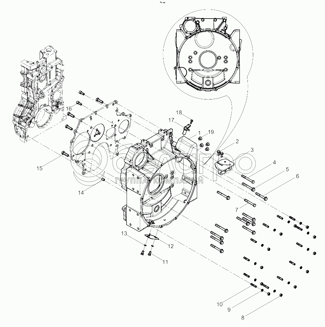 Каталог запасных частей к технике: Weichai WP13 DHP13Q0928. Flywheel Housing Group