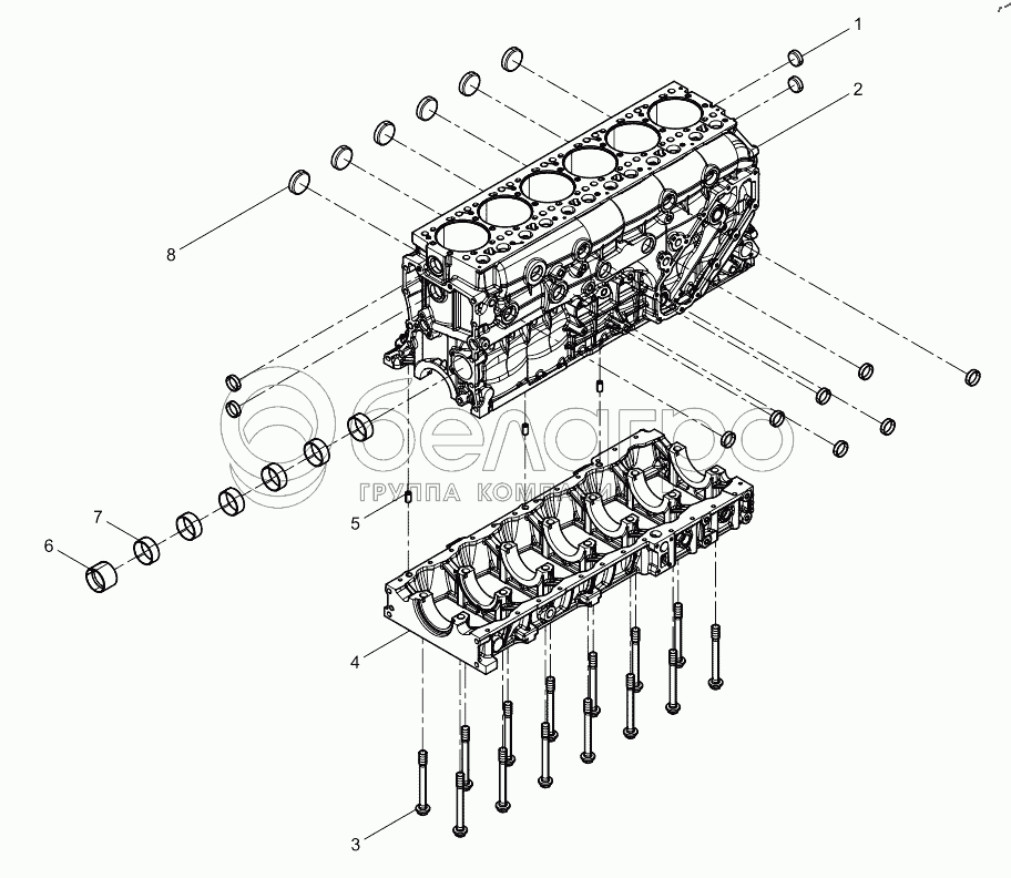 Каталог запасных частей к технике: Weichai WP13 DHP13Q3390. Crankcase pre-assembly