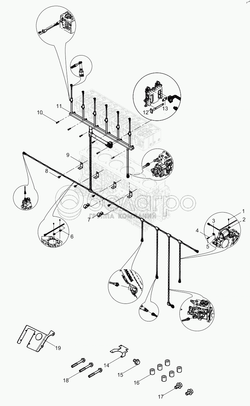 Каталог запасных частей к технике: Weichai WP13 DHP13Q3390. Electronic Control System Harness Group