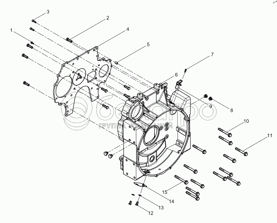 Каталог запасных частей к технике: Weichai WP13 DHP13Q3390. Flywheel Housing Group
