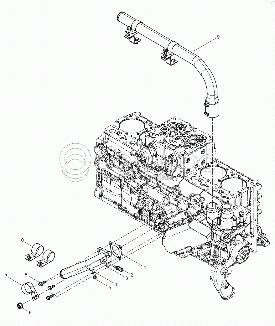 Каталог запасных частей к технике: Weichai WP13 DHP13Q3390. Water Pump Inlet Pipe Group