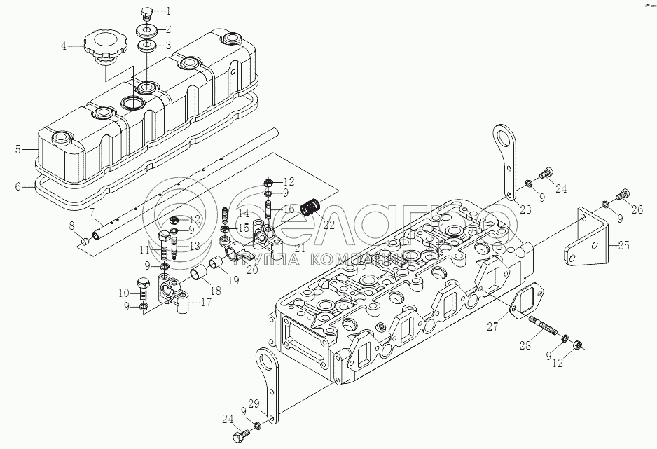 Каталог запасных частей к технике: Weichai WP2.1D18E2. Cylinder Head Assembly (1)