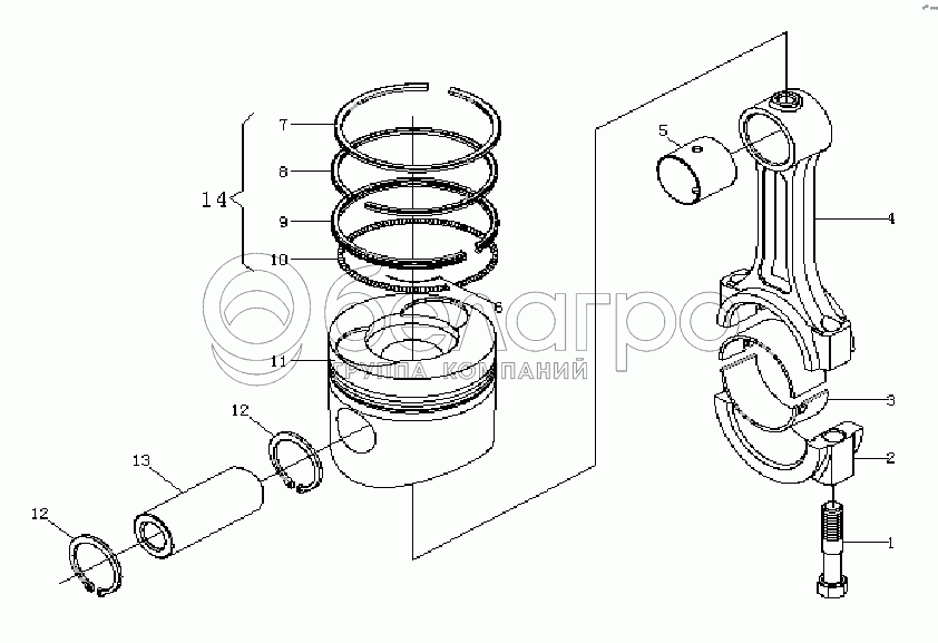 Каталог запасных частей к технике: Weichai WP2.1D18E2. Piston and Connecting Rod Assembly